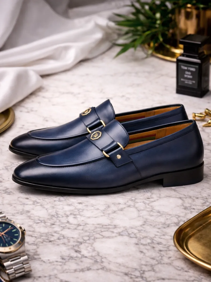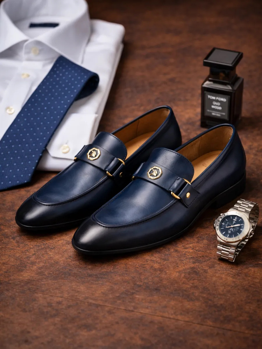 Modern erkek stilini tamamlayan toka detaylı lacivert deri erkek loafer ayakkabı, zarif tasarımı ve konforlu yapısıyla dikkat çeker. Klasik makosen formuna modern bir dokunuş kazandıran metal toka detayı, ayakkabıya sofistike bir görünüm kazandırırken stil sahibi erkekler için güçlü bir moda ifadesi oluşturur. Premium kalite deri yüzeyi hem dayanıklılık hem de estetik bir görünüm sunar. Bağcıksız slip-on tasarımı sayesinde kolay giyilip çıkarılabilir ve gün boyu rahat bir kullanım sağlar. Günlük kombinlerden iş hayatına, özel davetlerden şehir stiline kadar geniş bir kullanım alanı sunan bu loafer modeli, zamansız tasarımı ile her erkeğin gardırobunda bulunması gereken klasik bir parçadır. Premium kaliteli lacivert deri yüzey Şık metal toka detaylı tasarım Klasik loafer / makosen stil Bağcıksız slip-on rahat kullanım Günlük ve klasik kombinlere uyum