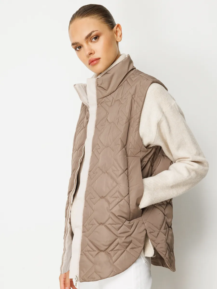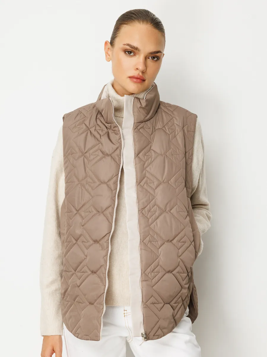 Model 5793 kapitone kadın yelek, modern desen detayları ve hafif yapısıyla günlük kombinlerin vazgeçilmez tamamlayıcısıdır. Dik yaka tasarımı soğuk havalara karşı ekstra koruma sağlarken, fermuarlı ön kapama pratik kullanım sunar. Özgün geometrik kapitone dikiş deseni modele dinamik ve şık bir görünüm kazandırır. Yan cepler fonksiyonellik sağlarken, hafif dolgulu yapısı sayesinde mevsim geçişlerinde ideal sıcaklık sunar. Triko, sweatshirt veya gömlek üzerine rahatlıkla kombinlenebilir. Günlük ve casual stil için ideal bir parçadır. Ürün Özellikleri: Model Kodu: 5793 Beden Aralığı: 42 – 48 Renk Seçenekleri: Siyah, Taş, Vizon Kapitone desenli tasarım Dik yaka Ön fermuar kapama Yan cepler Hafif dolgulu yapı Günlük ve spor kombinlere uygun