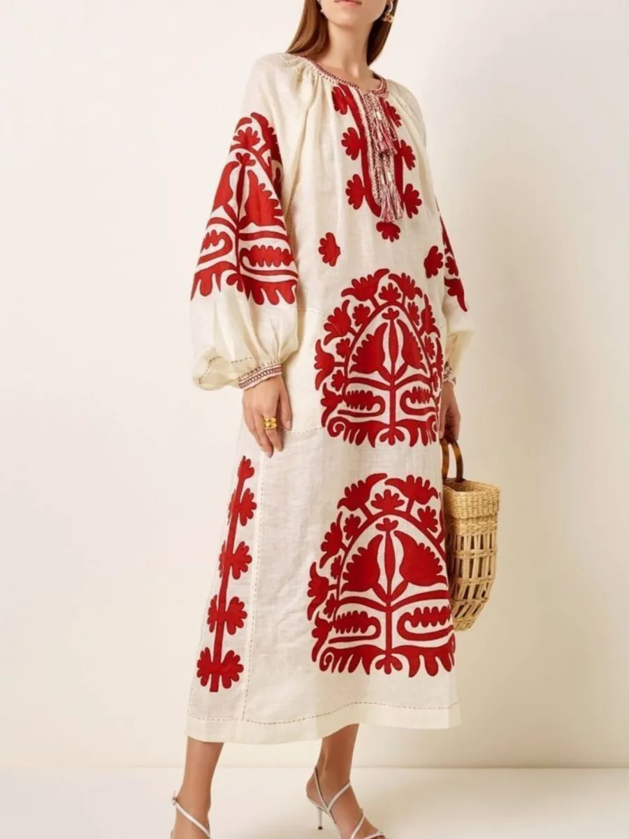 Kırmızı Motifli Etnik Elbise